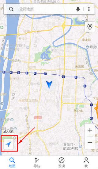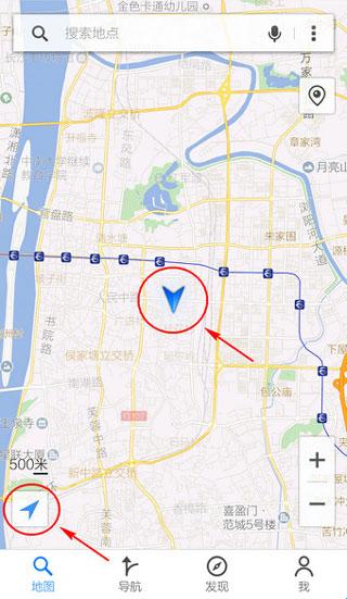 3.定位成功,“箭头”变为蓝色,图中心出现你的当前坐标。