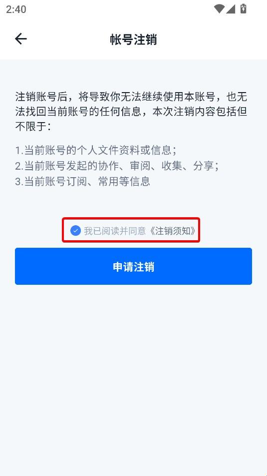 3、勾选“我已阅读并同意”,点击“申请注销”,在弹出的窗口里确定完成注销账号