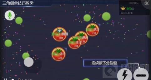 再快速的按下分裂键,进行快速合球。这个时候本体会遗留下一前一后两个小球,如果对手的手速快的话,即便吃掉你前面那一个球,你还有后面那一个球,所以你都不用担心会被淘汰。所以这个是在实战中非常有用的一种技巧。