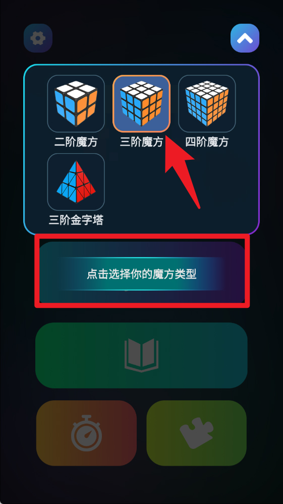 1. 打开应用后,首先点击进入魔方类型选择界面,根据自己的需求选择二阶、三阶、四阶或金字塔魔方,系统会根据不同类型提供专属学习内容。