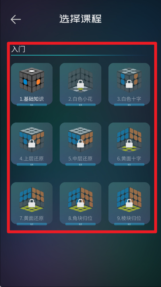 4. 点击课程模块即可进入系统化的学习路径,从基础知识到进阶技巧一应俱全,逐步掌握从白色小花到角块归位的完整流程。