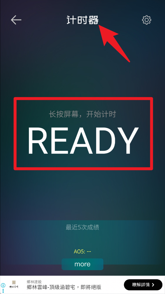 5. 使用计时器功能时,长按屏幕即可开始计时,松手后自动记录解魔方的成绩,用户可查看最近五次成绩,方便自我对比与提升。