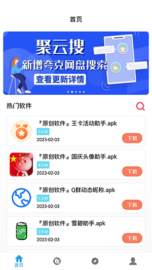 聚云搜app官方版可以为用户带来海量的资源,涵盖的资源类型非常丰富,不管是影视、小说、漫画还是应用和游戏资源等,基本都是可以免费为大家提供下载的。安全绿色无毒的,大家可以放心下载使用。所有资源的下载速度也是极快的。