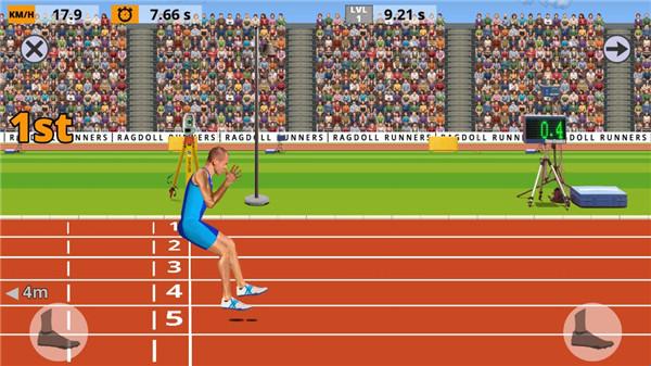 2、根据游戏中的障碍物或者运动时机进行有节奏的按键,并且在物理引擎的条件下控制好方向。游戏中主要操控运动员的两条腿,每条腿都会有一个按钮。