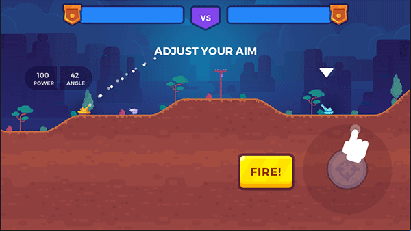 2、右下角的按键进行瞄准,自己目测可以轰炸到对方时即可点击“FIRE”发射;