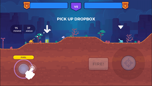 1、下载Tank Stars游戏后,左下角的按键可以移动,空中会不时掉落空投,你可以移动到空投位置拾取;