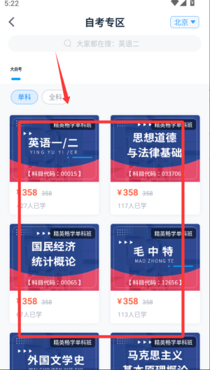 1、打开应用后注册账号并选择报考专业,系统会自动匹配对应的课程和题库资源。
