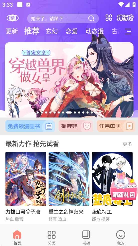 2、漫画分类丰富多元,如爱情、动作、冒险等,用户可以更好地根据自己的热爱进行选择;