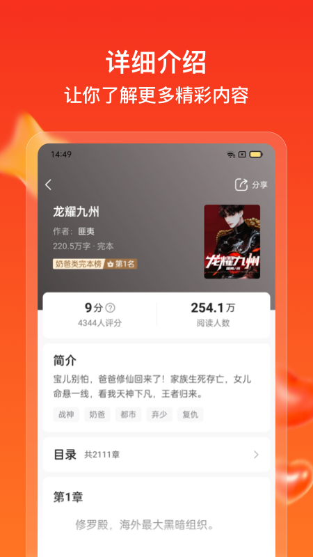 2、所有的小说作品都是完全免费观看的,聚合海量的优质图书作品,一键点击即可随时阅读