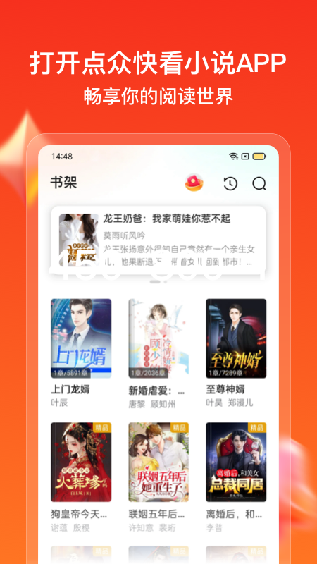 点众快看小说是一款专为喜欢看小说的用户们打造的手机阅读平台。软件内纯净无广告,为用户带来免受广告打扰的优质阅读体验。并且这里涵盖的书籍类型是非常丰富的,满足不同年龄阶段用户们的阅读需求,所有的书籍资源均是免费提供阅读的哦!
