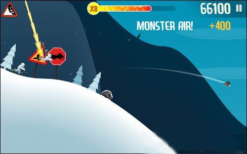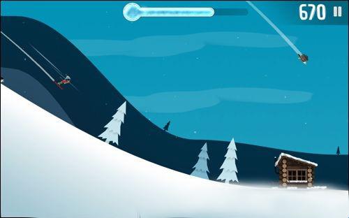 4. 滑雪时有各种各样的环境场景可以利用,各种动物和道具可以帮助你跑得更远