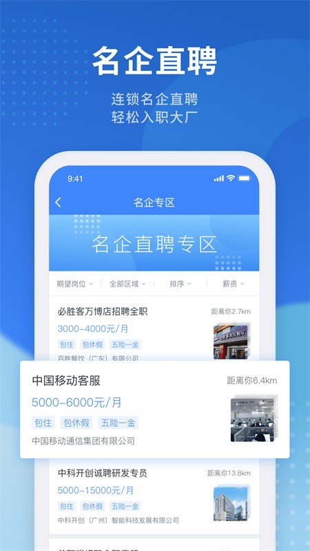 它是基于LBS推荐附近的工作,离家近,让你回家更方便。