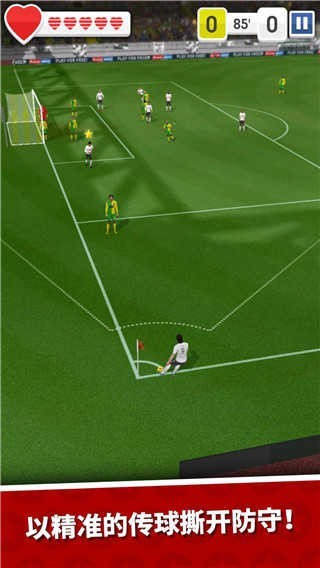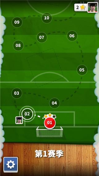 1、玩家可以在角色的可控范围内通过滑动屏幕来传球或是射门。每一关需要玩家通过这样的操作来传球直到攻破敌方的大门位置。如果从定点传球和定点射门的角度来说,本作的难度的确不高。毕竟不能达到像实况或者fifa那种操作流畅程度。