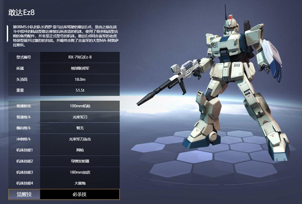 作为高达粉,机体数量一定是玩家最为关注的游戏内容之一。据说,《敢达争锋对决》将会拥有全系列的高达机体。在4月19日的发布会中,官 方已经对外公布了元祖高达、夏亚扎古、强袭、刹帝利四台机体,但是仅仅4台机体是绝对不够小伙伴耍的。首次测试中我们还将玩到哪些机体?让我们在游戏开测后一探究竟!