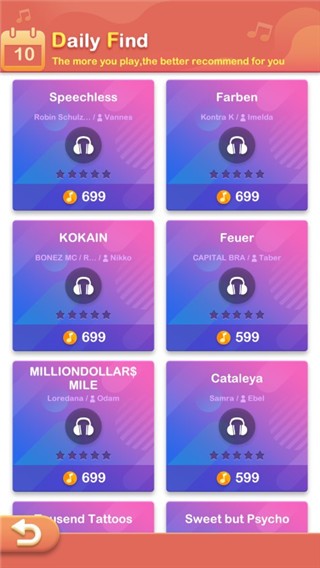 2、选择你要玩的歌曲,你也可以用音符进行解锁;