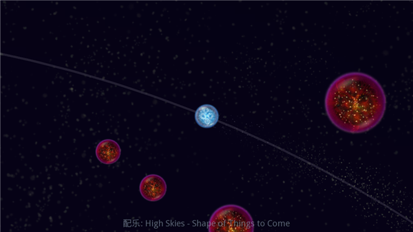 5、唯一的变量是玩家操纵星球喷出的气泡,气泡的作用一是移动星球,二是可以推开附近的星球,利用气泡的功能,玩家在接近其他星球的时候,可以利用惯性和推力推开接近自己的红色星球。