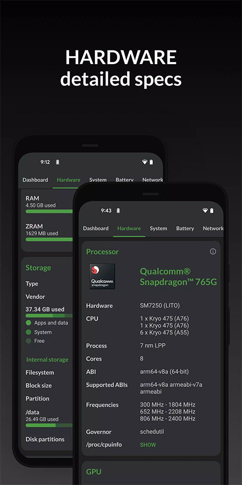 2、系统:获取有关您的设备名称、系统的版本号、内核、root权限、架构、指令集、品牌、制造商、环境、Android版本和内核的所有信息。