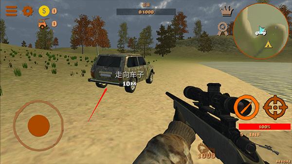 7、若出现猎物时,你可以使用使用倍镜瞄准猎物,并点击射击按钮将猎物击杀