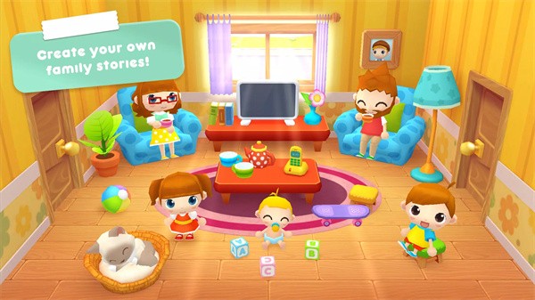 1. 创造你自己的家庭故事。加入一个由6个可爱角色组成的家庭,在他们的日常生活中创造自己的家庭故事