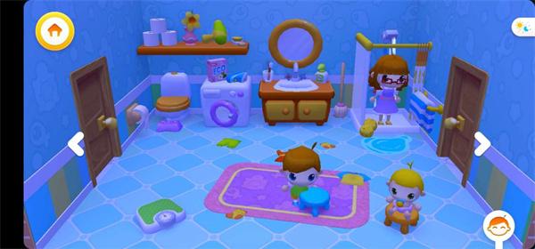 4、在浴室当中我们就可以帮小朋友洗澡、洗漱等等;
