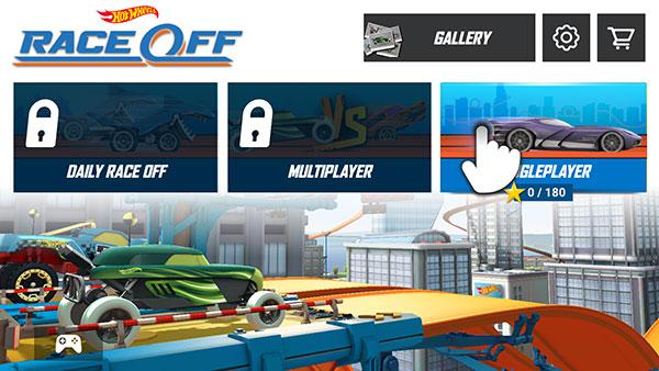1、进入风火轮赛车游戏最新版,可以看到有三种模式可以选择,目前头两个还没解锁,因此先点击最后一个模式进行游玩。