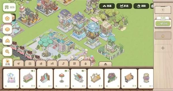 点击“多选”按钮,可以选中多个装饰集体移动,甚至连地砖也可以一并转移,非常适合范围布局。旁边的“消除”按钮,可以将多个装饰合并消除,一步到位的便利操作。