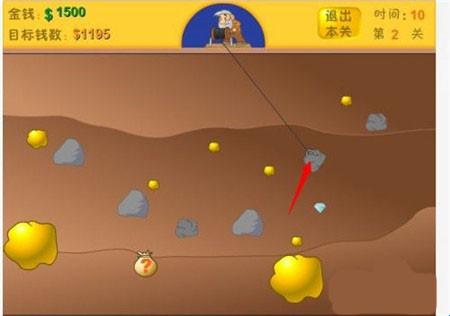 4、在土地下面的东西都可以抓得到。随着关卡的往后。会出现钻石等贵重的物品。当然石头也是可以抓住。不过是浪费时间