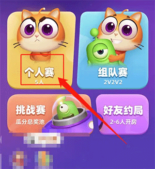 1、打开拆弹猫游戏,点击个人赛