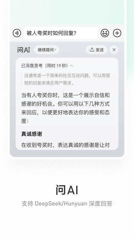 拥有智能拼写、智能推荐、表情推荐等功能,在聊天交流中,可以更便捷的分享你想表达的内容或表情。