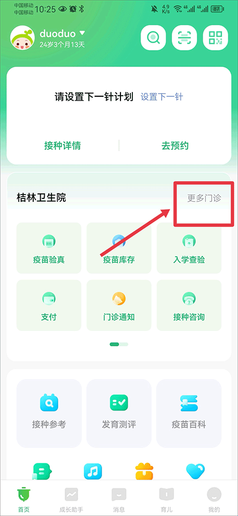 1、在首页中点击更多门诊