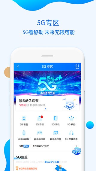 1、5G专区查询5G覆盖、办理5G资费、购买5G手机、了解5G资讯