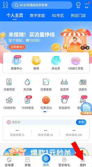 3、查套餐使用:首页→套餐余量;