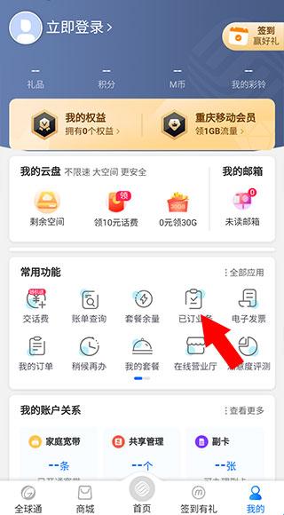 2、跳转至【我的】界面后,点击【已订业务】