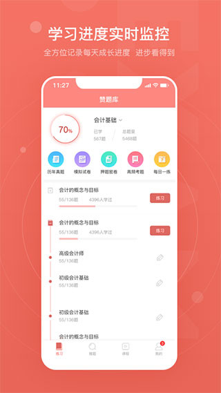 3、海量题库每日一练、章节练习、模拟考场、历年真题海量试题,配 备名师视频解析掌上刷。