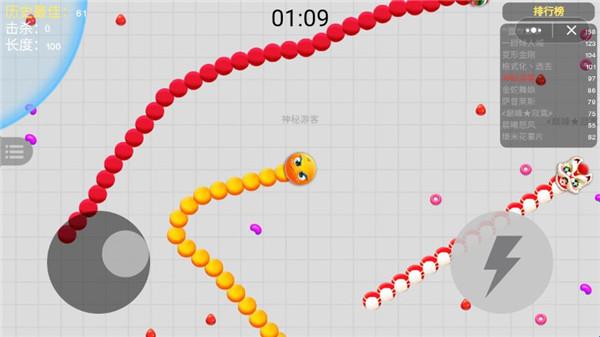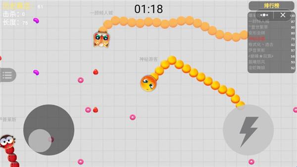 4、长按加速键,用合理的跑位让蛇身被他人撞上,就可以吃掉“食材”快速拉长。