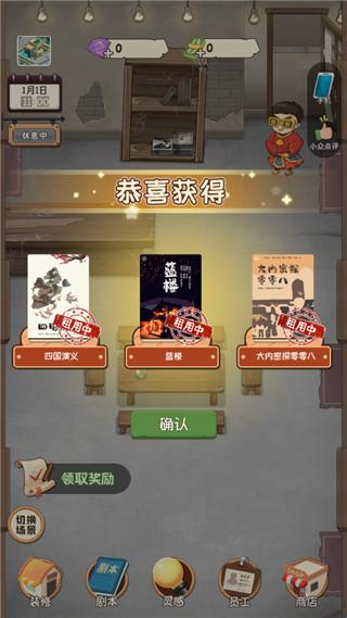 6、我们可以看到店面已经干净了,然后向你的合伙人租借剧本,每个剧本都有租借费玩家需要好好经营;