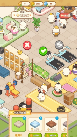 4、根据自己的喜好和经营策略建设添加运动器材,如跑步机、健身单车、瑜伽垫等。