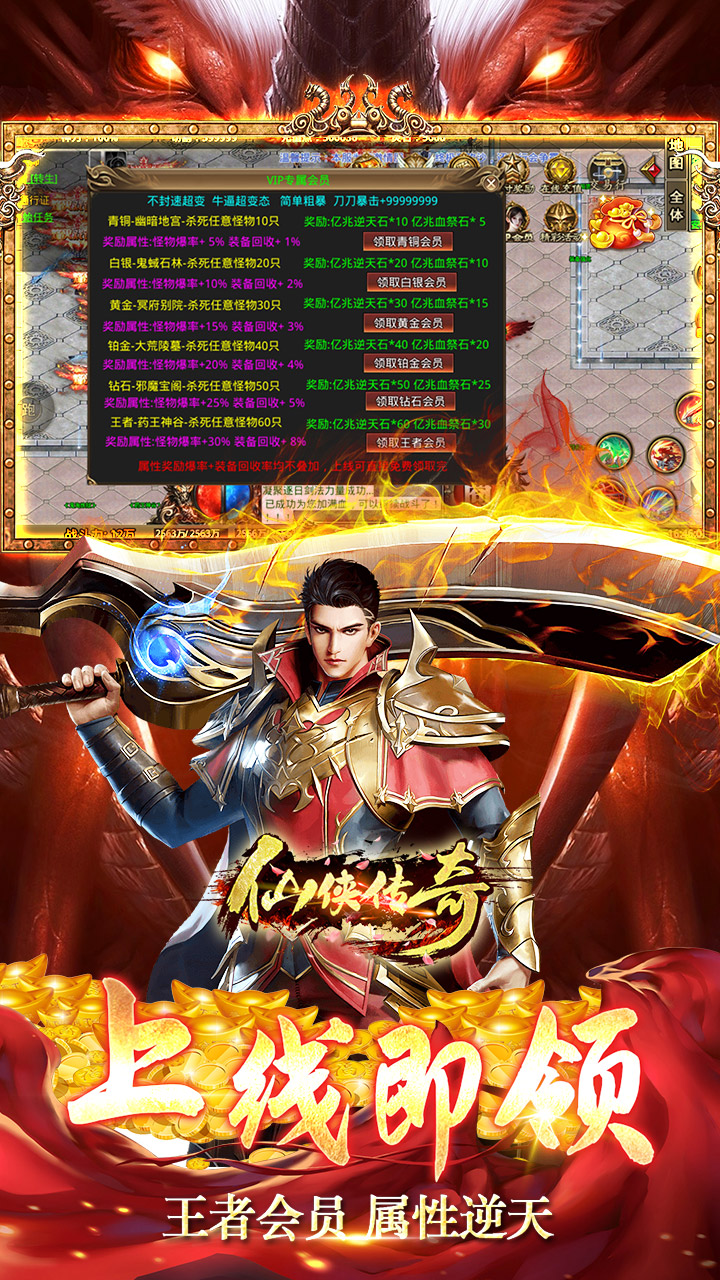 热血复古的仙侠传奇,开辟了一个全新的传奇游戏玩法,在唯美的仙侠世界去提升战力,打造史诗级别的装备和武器,去称霸全服。