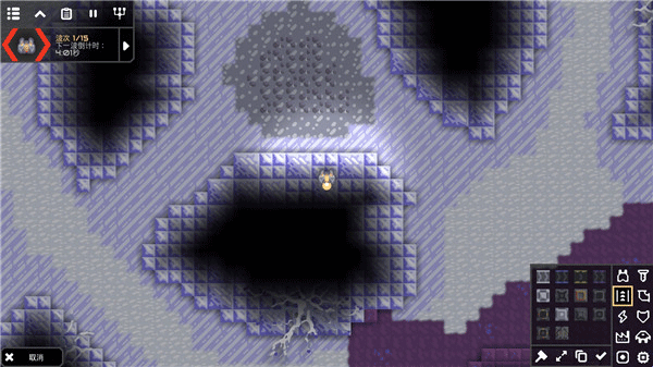 4、建好后找怪的出生地,找到后记得多用暂停,然后看下怪的出生地有没有另外出路,假如有的话先在正门找铜矿建炮台(第二个炮台只打天上的别建)