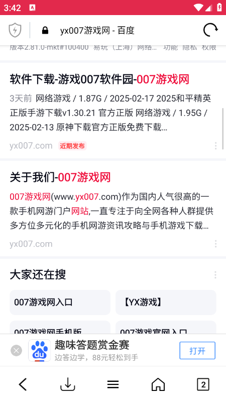 3、可以看到是直达百度网站的,还可以搜索我们yx007游戏网